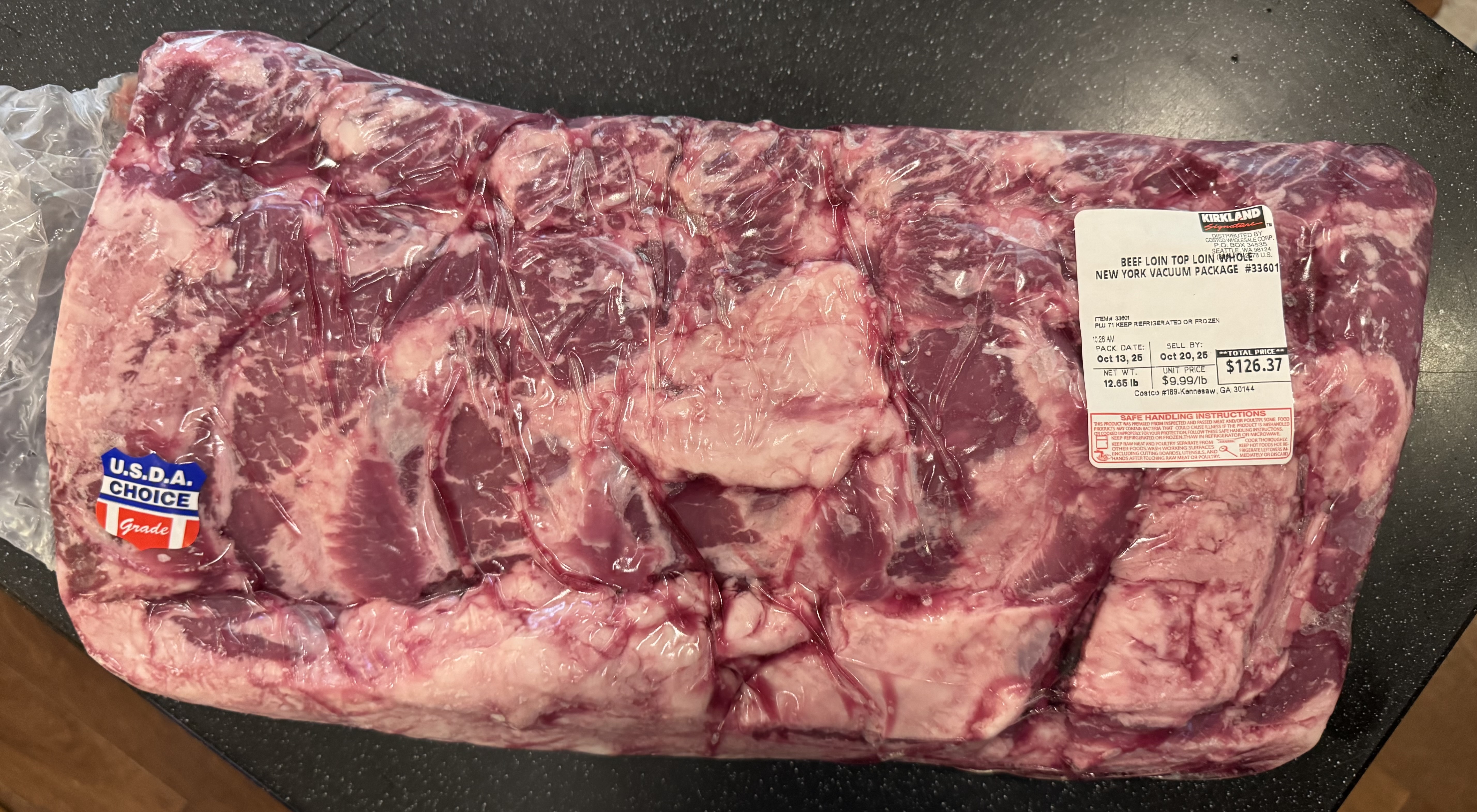 Adjacent to them was a vacuum packed top loin for $9.99 p/lb. The ‘primal’ that NY Strips are cut from.