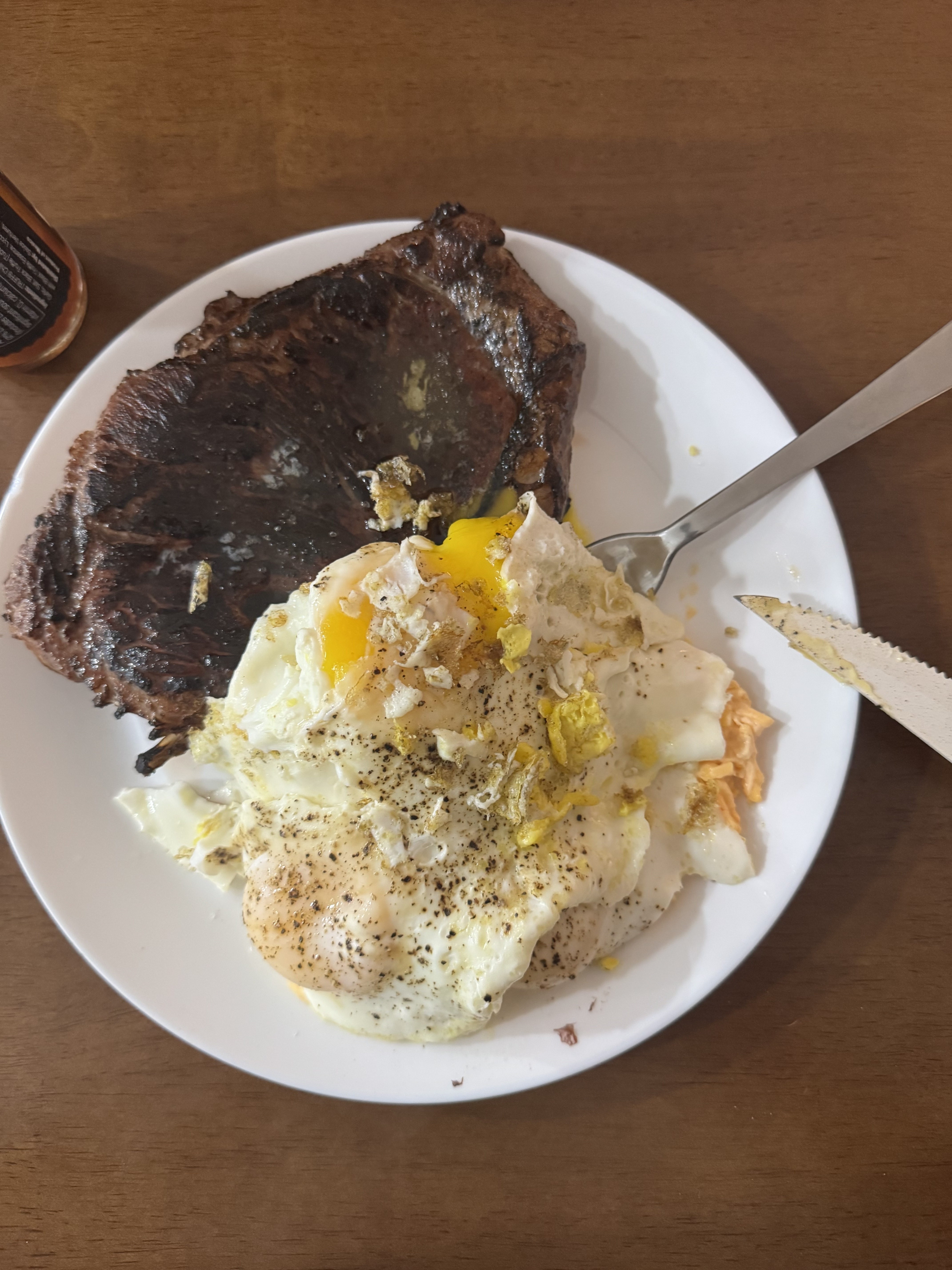 6 large eggs cooked under a dome cover in order to cook the whites.