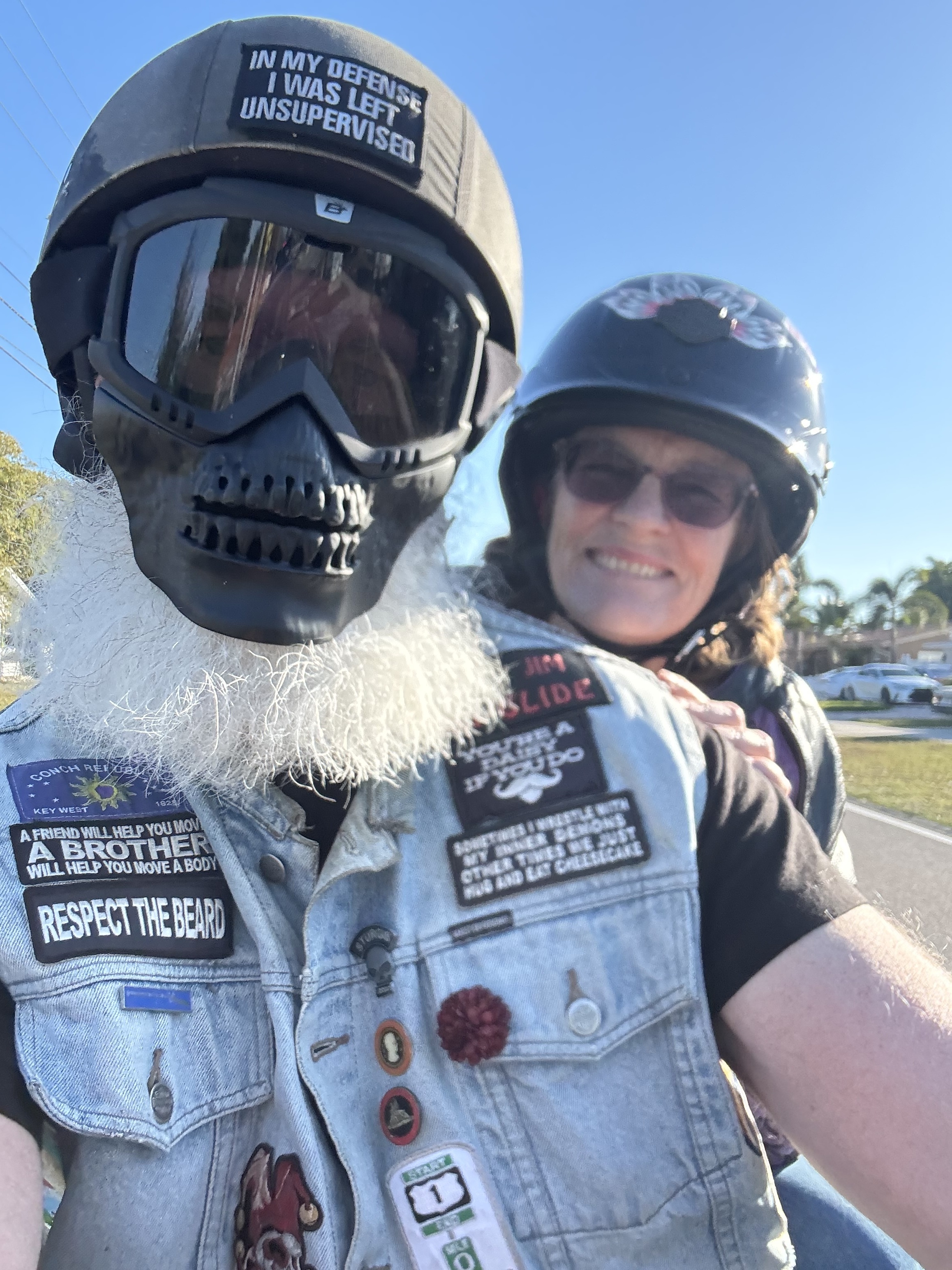 When riding my scoot, I wear a face mask, not just to hide my ‘Uga-mug’, but to keep my beard out of my face.
